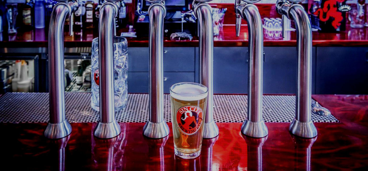 Five distinct beer recipes (Sin City Amber, Sin City Light, Sin City Stout, Sin City IPA and Sin City Weisse - as well as a rotating seasonal tap) using traditional methods and premium raw materials, satisfy both the microbrew savvy drinker and those with a preference for a traditional domestic style beer.